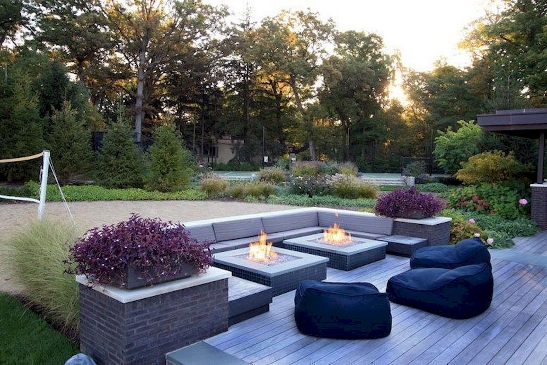 Додаткові елементи: Окрім самого вогнища, в ландшафтному дизайні часто використовуються додаткові елементи, такі як лавки, круги для сидіння, декоративні каміння або навіть підсвічування, щоб підкреслити красу кострища вночі.