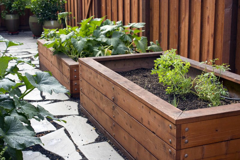 Зонування простору. Грядки розміщують у чітких геометричних формах, часто у вигляді квадратів або прямокутників.