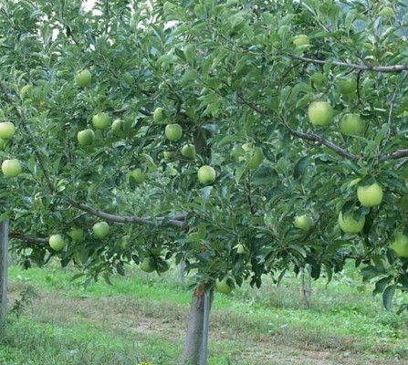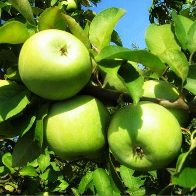 Плоди даного сортів не симетрично плескаті. У деяких випадках їх форма нагадує конус. Вони можуть бути пофарбовані як в яскравий, так і світлий колір. Яблука зелені, але в період повного дозрівання їх бочок забарвлюється в малиновий відтінок. Їх поверхня всипала невеликими підшкірними крапками. Крім цього, на ній можуть з'являтися нарости, які нагадують бородавку. А ось всередині яблуко білосніжне. Воно соковите, солодке, має кислинку.