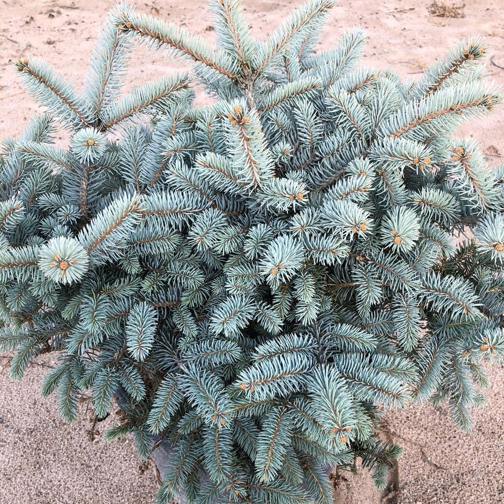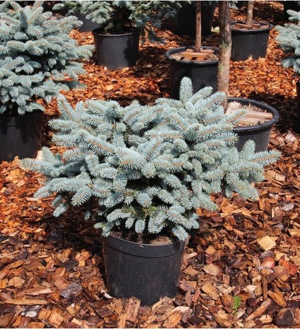 Карликовий ширококонічний сорт ялини колючої. Одна з улюблених рослин ландшафтних дизайнерів.