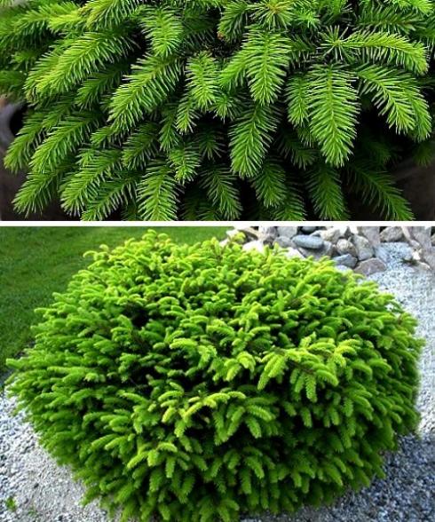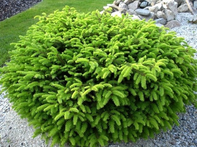 Ялина з подушковидною формою крони, що має ложе в центрі. Карликовий вічнозелений чагарник, діаметром крони до 1,5м і висотою до 1 м. Крона приплюснута. Гілки ростуть віялоподібно, рівномірно. Пагони численні. Хвоя густо-розташована на пагонах, темно-зелена, гостра, коротка. Дуже ефектно виглядає біля низьких бордюрів, в невеликих групах, створених на газонах і скельних садах. Одна з небагатьох форм ялини, придатної для створення дуже щільних живоплотів і неповторних топіарних композицій.