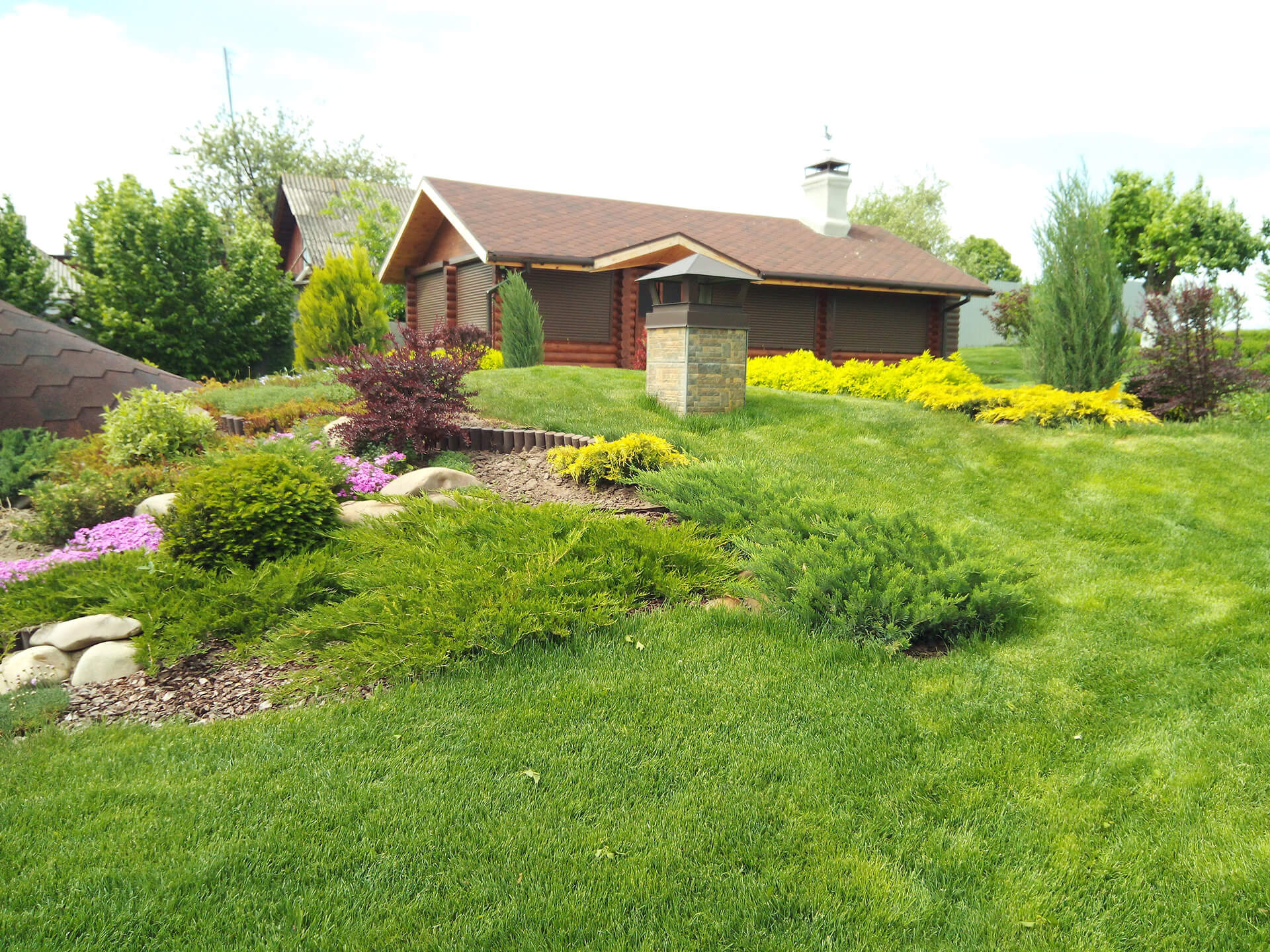 Цікава територія терасована на різні рівні та створений неповторний рельєф газону та рокаріїв. На території є гарний сад, виноградник, ягідник. На об'єкті поєднано красу ландшафтного дизайну та практичність і корисність дачного будинку.