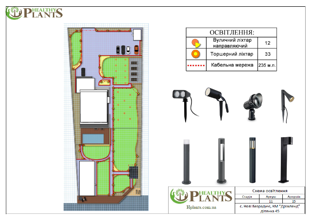 Cxeмa пpoклaдки кaбeлiв для влaштyвaння ocвiтлeння тa poзтaшyвaння cвiтилъникiв, вимикaчiв, poзeтoк. Підбір світильників з Замовником.
